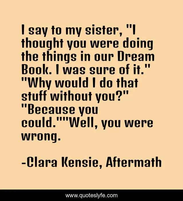 "Clara Kensie, Aftermath Quotes." Quoteslyfe.com, 2025. Mon. 08 Dec. 2025. <https://www.quoteslyfe.com/quote/I-say-to-my-sister-I-thought-86072>.