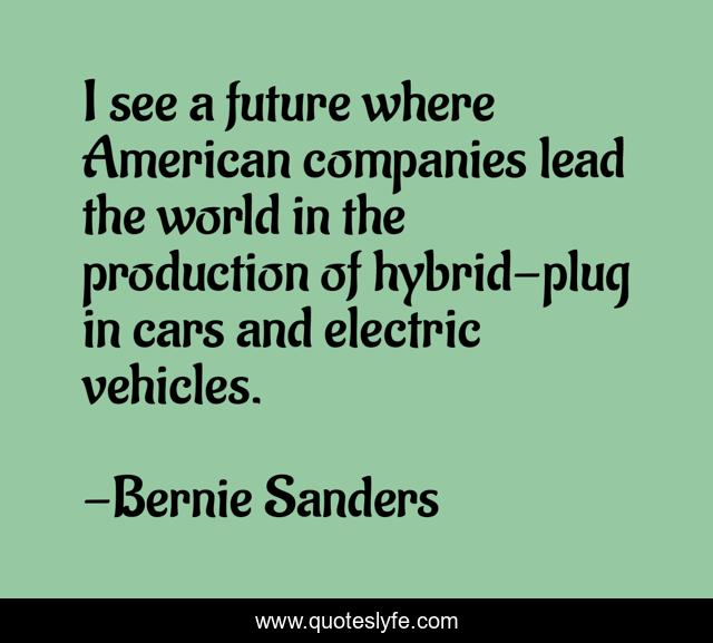 This page presents the quote "I see a future where American companies lead the world in the production of hybrid-plug in cars and electric vehicles.". Author of this quote is Bernie Sanders. This quote is about world, american, future,.