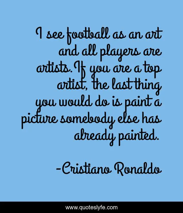 This page presents the quote "I see football as an art and all players are artists.If you are a top artist, the last thing you would do is paint a picture somebody else has already painted.". Author of this quote is Cristiano Ronaldo. This quote is about cristiano-ronaldo, football, art, inspirationalational,.