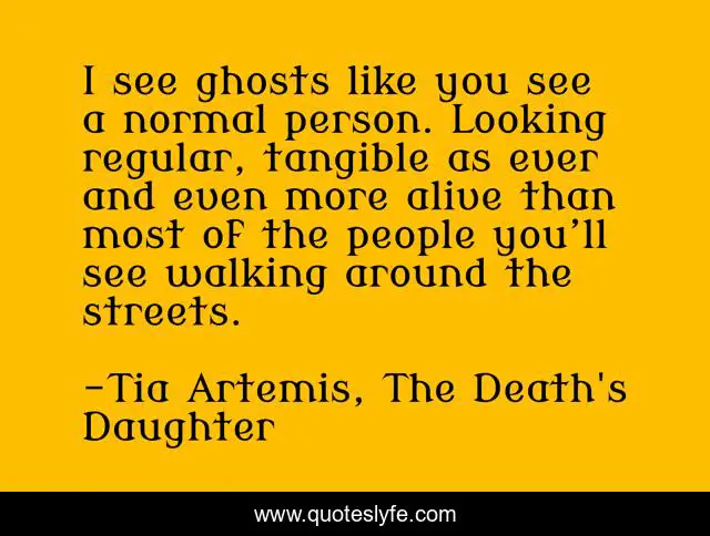 "Tia Artemis, The Death's Daughter Quotes." Quoteslyfe.com, 2025. Sat. 06 Dec. 2025. <https://www.quoteslyfe.com/quote/I-see-ghosts-like-you-see-a-226618>.