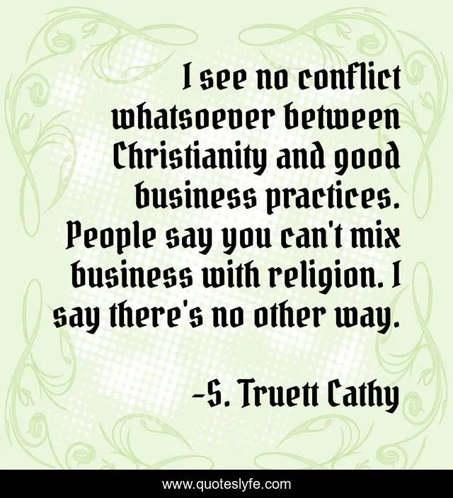 "S. Truett Cathy Quotes." Quoteslyfe.com, 2025. Sat. 06 Dec. 2025. <https://www.quoteslyfe.com/quote/I-see-no-conflict-whatsoever-between-Christianity-301656>.