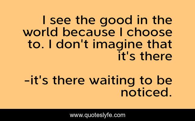 "it's there waiting to be noticed. Quotes." Quoteslyfe.com, 2025. Sat. 06 Dec. 2025. <https://www.quoteslyfe.com/quote/I-see-the-good-in-the-world-135408>.