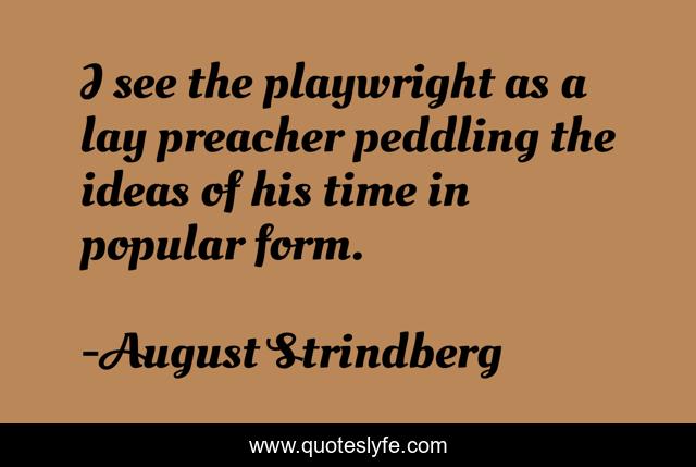 This page presents the quote "I see the playwright as a lay preacher peddling the ideas of his time in popular form.". Author of this quote is August Strindberg. This quote is about creation, creativity,.