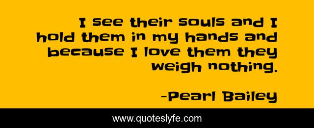This page presents the quote "I see their souls and I hold them in my hands and because I love them they weigh nothing.". Author of this quote is Pearl Bailey. This quote is about helping, people,.