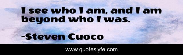This page presents the quote "I see who I am, and I am beyond who I was.". Author of this quote is Steven Cuoco. This quote is about brainy, best-inspirational, quote-of-the-day, international-authors, quotes, inspirational, inspirational-living, enthusiasm, quotes-to-live-by,.