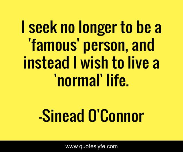 This page presents the quote "I seek no longer to be a 'famous' person, and instead I wish to live a 'normal' life.". Author of this quote is Sinead O'Connor. This quote is about wish, life, live,.