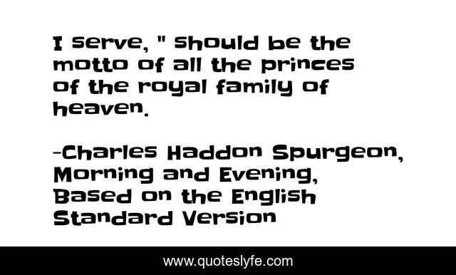 "Charles Haddon Spurgeon, Morning and Evening, Based on the English Standard Version Quotes." Quoteslyfe.com, 2025. Sun. 07 Dec. 2025. <https://www.quoteslyfe.com/quote/I-serve-should-be-the-motto-of-205948>.