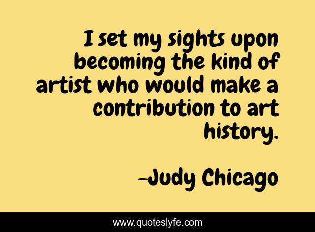This page presents the quote "I set my sights upon becoming the kind of artist who would make a contribution to art history.". Author of this quote is Judy Chicago. This quote is about contribution, art, artist,.