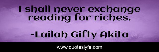 This page presents the quote "I shall never exchange reading for riches.". Author of this quote is Lailah Gifty Akita. This quote is about enthusiasm, reading, riches, inspirational,.