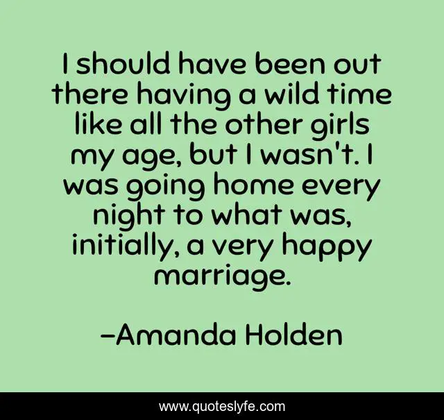 This page presents the quote "I should have been out there having a wild time like all the other girls my age, but I wasn't. I was going home every night to what was, initially, a very happy marriage.". Author of this quote is Amanda Holden. This quote is about home, marriage, time,.