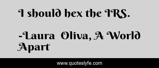 "Laura Oliva, A World Apart Quotes." Quoteslyfe.com, 2025. Fri. 05 Dec. 2025. <https://www.quoteslyfe.com/quote/I-should-hex-the-IRS-232235>.