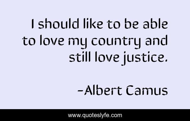 This page presents the quote "I should like to be able to love my country and still love justice.". Author of this quote is Albert Camus. This quote is about justice, nationalism, patriotism,.