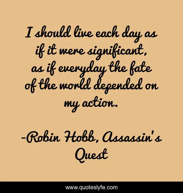 This page presents the quote "I should live each day as if it were significant, as if everyday the fate of the world depended on my action.". Author of this quote is Robin Hobb, Assassin's Quest. .
