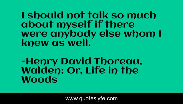 This page presents the quote "I should not talk so much about myself if there were anybody else whom I knew as well.". Author of this quote is Henry David Thoreau, Walden: Or, Life in the Woods. .
