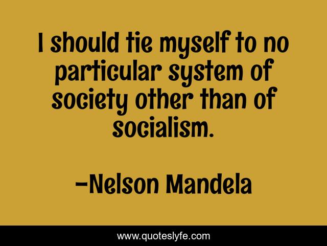 This page presents the quote "I should tie myself to no particular system of society other than of socialism.". Author of this quote is Nelson Mandela. This quote is about myself, socialism, system,.