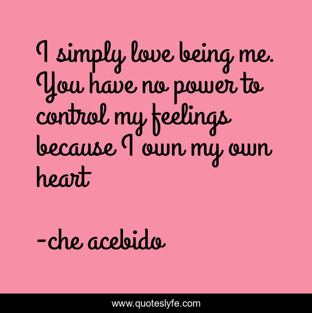 This page presents the quote "I simply love being me. You have no power to control my feelings because I own my own heart". Author of this quote is che acebido. .