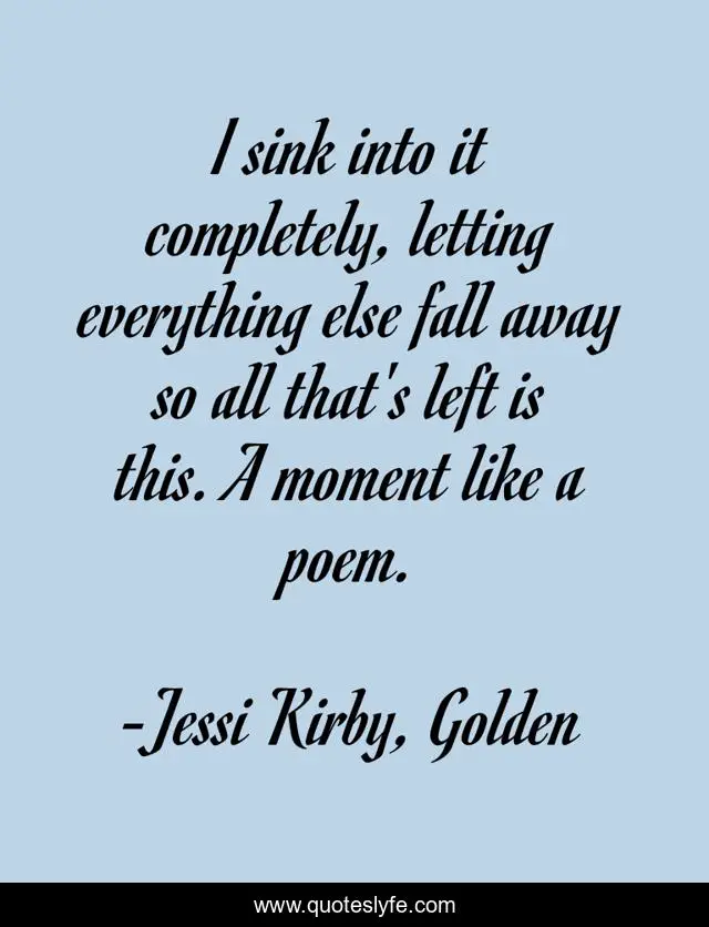 This page presents the quote "I sink into it completely, letting everything else fall away so all that's left is this. A moment like a poem.". Author of this quote is Jessi Kirby, Golden. This quote is about poem, life, moment,.