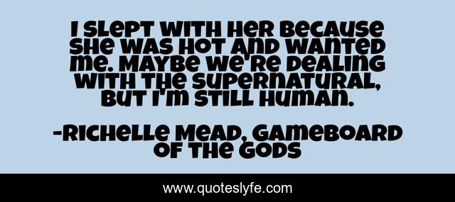 This page presents the quote "I slept with her because she was hot and wanted me. Maybe we're dealing with the supernatural, but I'm still human.". Author of this quote is Richelle Mead, Gameboard of the Gods. This quote is about lust, gameboard-of-the-gods, supernatural,.