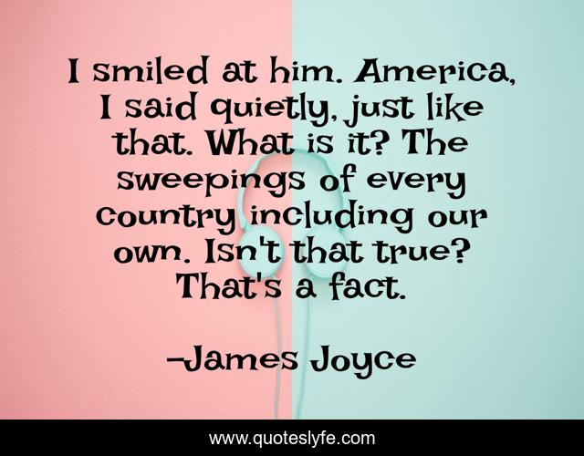 This page presents the quote "I smiled at him. America, I said quietly, just like that. What is it? The sweepings of every country including our own. Isn't that true? That's a fact.". Author of this quote is James Joyce. This quote is about joyce, america, ulysses, immigration,.