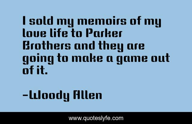 This page presents the quote "I sold my memoirs of my love life to Parker Brothers and they are going to make a game out of it.". Author of this quote is Woody Allen. .