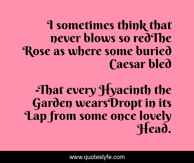 This page presents the quote "I sometimes think that never blows so redThe Rose as where some buried Caesar bled". Author of this quote is That every Hyacinth the Garden wearsDropt in its Lap from some once lovely Head.. This quote is about omar khayyám, rubáiyát of omar khayyám,.