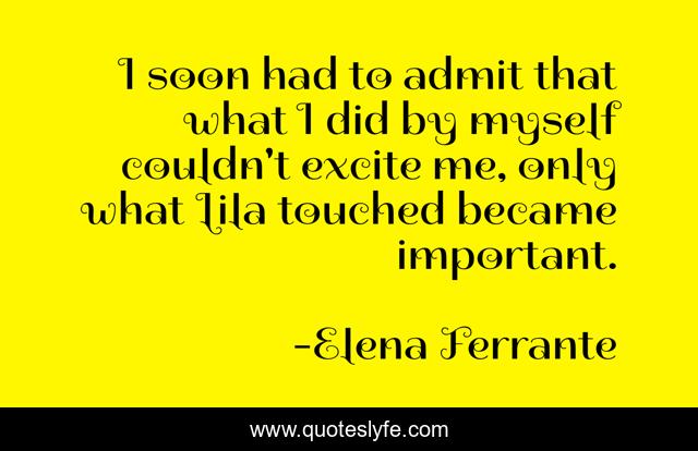 This page presents the quote "I soon had to admit that what I did by myself couldn't excite me, only what Lila touched became important.". Author of this quote is Elena Ferrante. This quote is about excitement, friends, inspiration,.