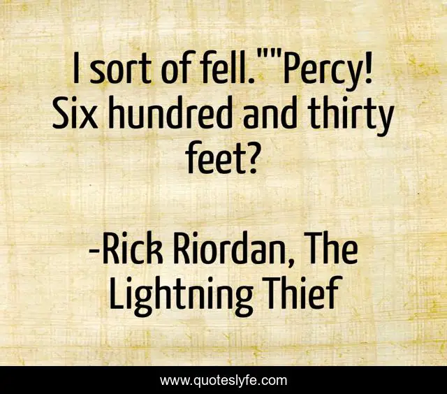 This page presents the quote "I sort of fell.""Percy! Six hundred and thirty feet?". Author of this quote is Rick Riordan, The Lightning Thief. This quote is about funny, mythology, humor, fell, haha, lol, lightning, percy, greek,.