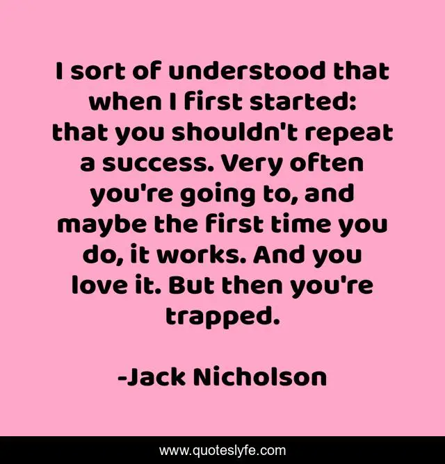 This page presents the quote "I sort of understood that when I first started: that you shouldn't repeat a success. Very often you're going to, and maybe the first time you do, it works. And you love it. But then you're trapped.". Author of this quote is Jack Nicholson. This quote is about love, affection, time,.