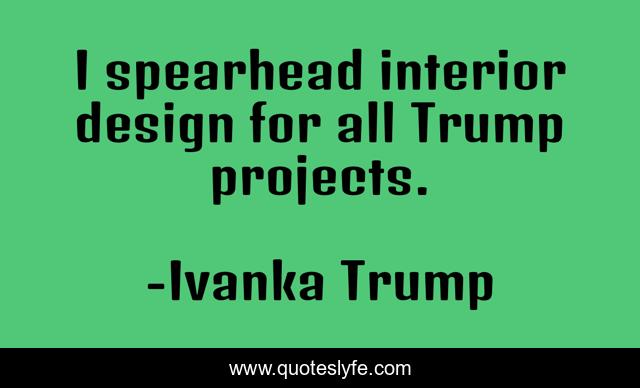 This page presents the quote "I spearhead interior design for all Trump projects.". Author of this quote is Ivanka Trump. This quote is about interior, trump, projects,.