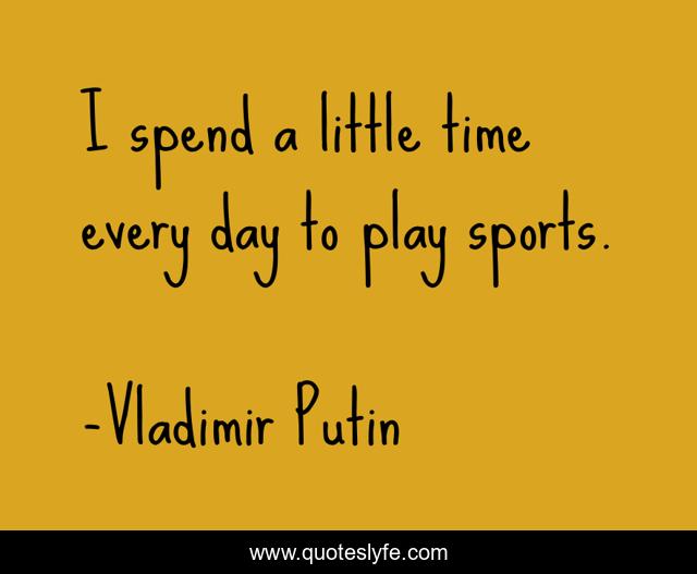 This page presents the quote "I spend a little time every day to play sports.". Author of this quote is Vladimir Putin. This quote is about play, day, time,.