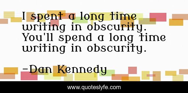 This page presents the quote "I spent a long time writing in obscurity. You'll spend a long time writing in obscurity.". Author of this quote is Dan Kennedy. This quote is about obscurity, writing,.