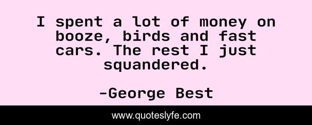 This page presents the quote "I spent a lot of money on booze, birds and fast cars. The rest I just squandered.". Author of this quote is George Best. This quote is about car, birds, rest,.