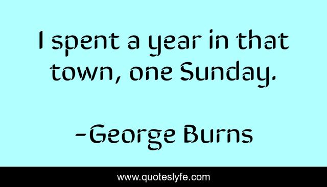 This page presents the quote "I spent a year in that town, one Sunday.". Author of this quote is George Burns. This quote is about town, sunday, year,.
