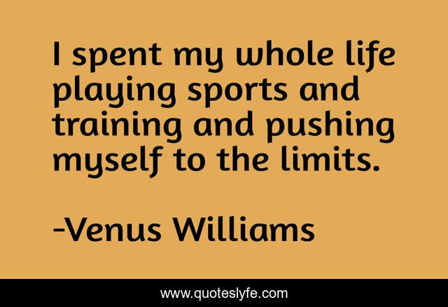 This page presents the quote "I spent my whole life playing sports and training and pushing myself to the limits.". Author of this quote is Venus Williams. This quote is about myself, training, life,.