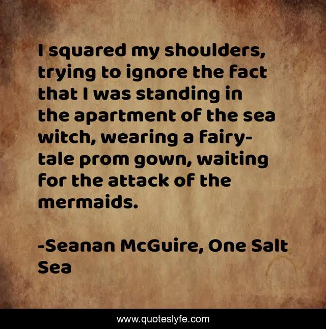 This page presents the quote "I squared my shoulders, trying to ignore the fact that I was standing in the apartment of the sea witch, wearing a fairy-tale prom gown, waiting for the attack of the mermaids.". Author of this quote is Seanan McGuire, One Salt Sea. This quote is about funny, comedy, fairy-tales, surreal,.