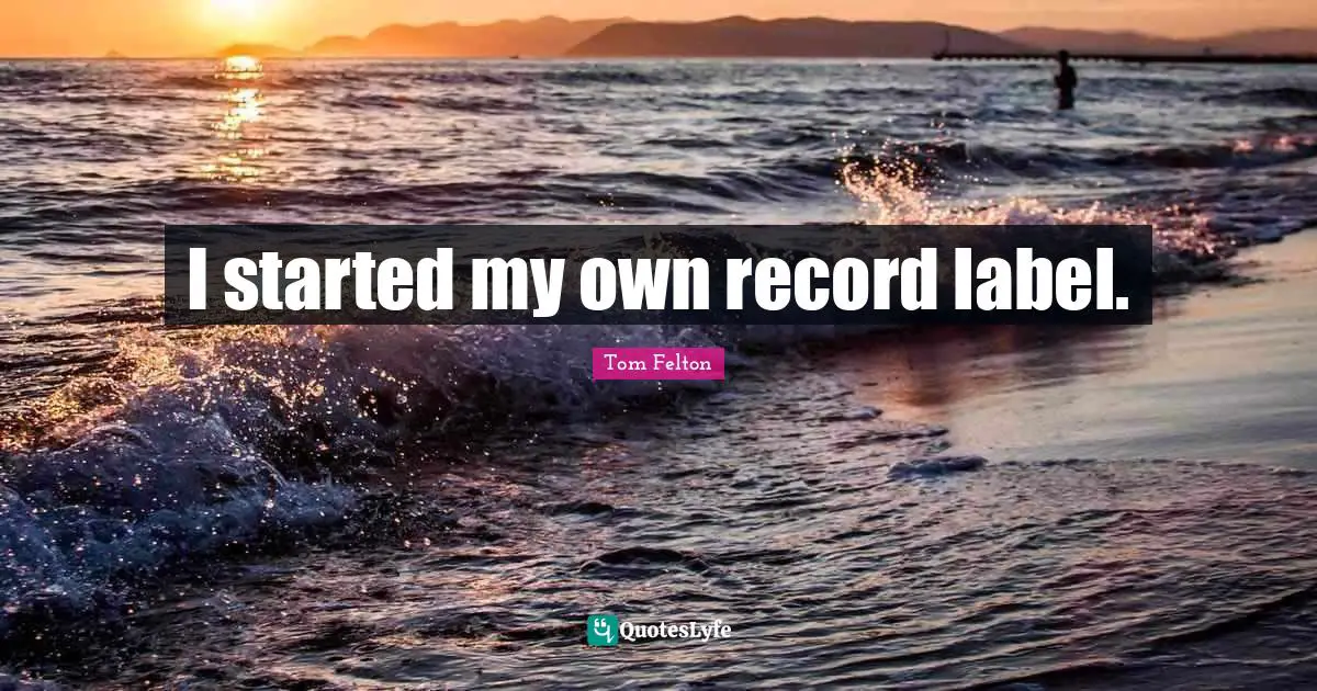 This page presents the quote "I started my own record label.". Author of this quote is Tom Felton. This quote is about my own, records, labels, record labels,.