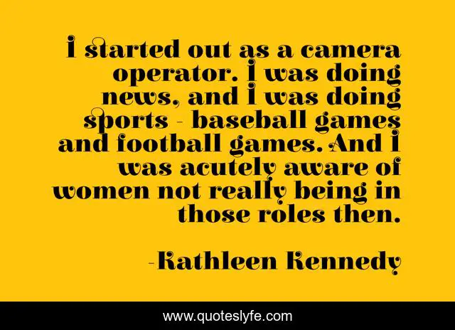 This page presents the quote "I started out as a camera operator. I was doing news, and I was doing sports - baseball games and football games. And I was acutely aware of women not really being in those roles then.". Author of this quote is Kathleen Kennedy. This quote is about football, baseball, women,.