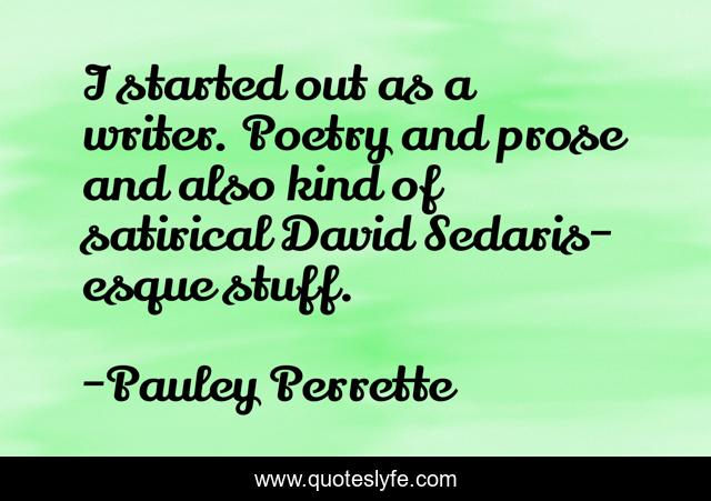 This page presents the quote "I started out as a writer. Poetry and prose and also kind of satirical David Sedaris-esque stuff.". Author of this quote is Pauley Perrette. This quote is about started, kind, writer,.