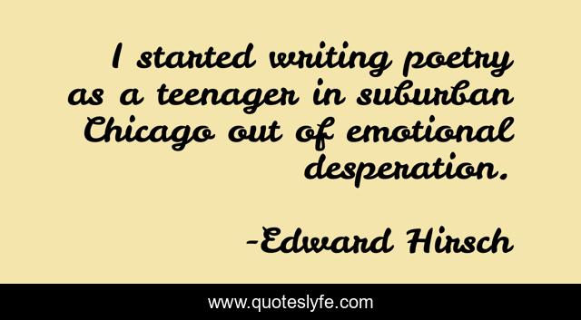 This page presents the quote "I started writing poetry as a teenager in suburban Chicago out of emotional desperation.". Author of this quote is Edward Hirsch. This quote is about emotional, writing, chicago,.