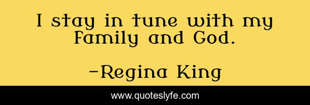 This page presents the quote "I stay in tune with my family and God.". Author of this quote is Regina King. This quote is about god, tune, stay,.
