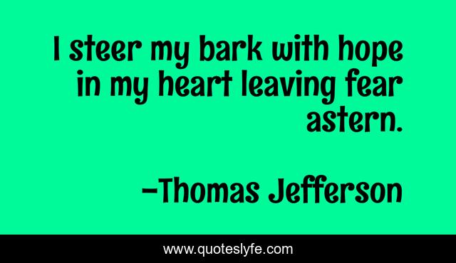 This page presents the quote "I steer my bark with hope in my heart leaving fear astern.". Author of this quote is Thomas Jefferson. .