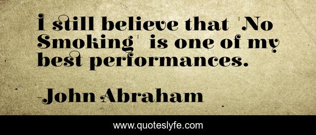 This page presents the quote "I still believe that 'No Smoking' is one of my best performances.". Author of this quote is John Abraham. This quote is about smoking, believe, still,.