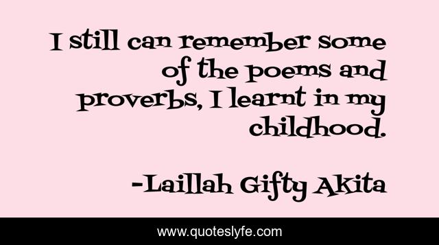 This page presents the quote "I still can remember some of the poems and proverbs, I learnt in my childhood.". Author of this quote is Laillah Gifty Akita. This quote is about poems, childhood, learning,.