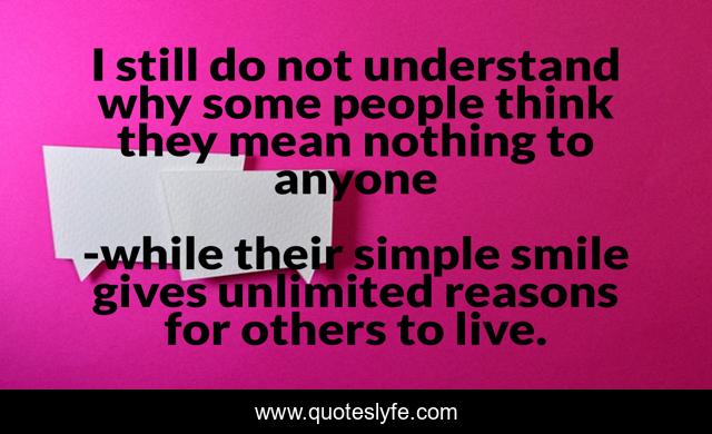 "while their simple smile gives unlimited reasons for others to live. Quotes." Quoteslyfe.com, 2025. Fri. 05 Dec. 2025. <https://www.quoteslyfe.com/quote/I-still-do-not-understand-why-some-228561>.