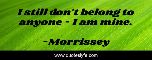 This page presents the quote "I still don't belong to anyone - I am mine.". Author of this quote is Morrissey. This quote is about humor, music, lyrics,.