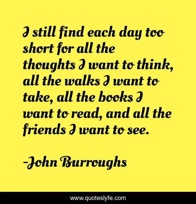 This page presents the quote "I still find each day too short for all the thoughts I want to think, all the walks I want to take, all the books I want to read, and all the friends I want to see.". Author of this quote is John Burroughs. .