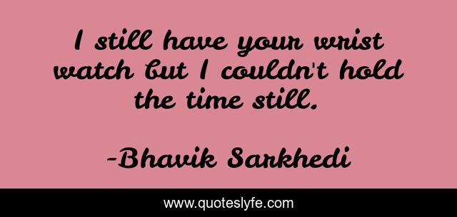 "Bhavik Sarkhedi Quotes." Quoteslyfe.com, 2025. Fri. 05 Dec. 2025. <https://www.quoteslyfe.com/quote/I-still-have-your-wrist-watch-but-38876>.