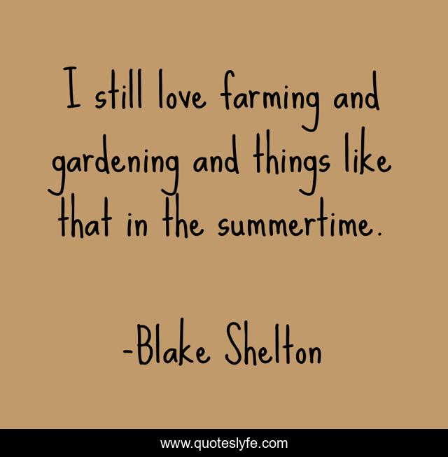 This page presents the quote "I still love farming and gardening and things like that in the summertime.". Author of this quote is Blake Shelton. This quote is about farming, love, like, affection,.