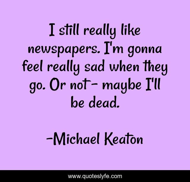 This page presents the quote "I still really like newspapers. I'm gonna feel really sad when they go. Or not - maybe I'll be dead.". Author of this quote is Michael Keaton. This quote is about feel, like, dead,.