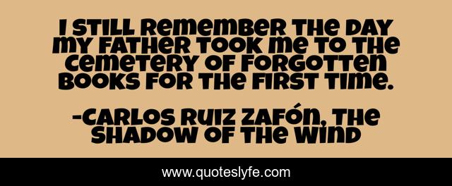 This page presents the quote "I still remember the day my father took me to the Cemetery of Forgotten Books for the first time.". Author of this quote is Carlos Ruiz Zafón, The Shadow of the Wind. .